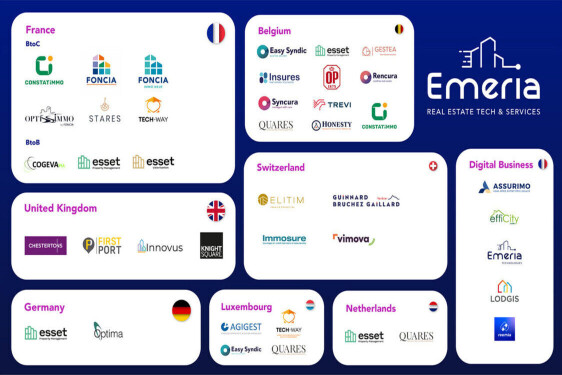 Seitdem hat Emeria sein Geschäft durch Übernahmen von Immobilien-Dienstleistungsunternehmen in Belgien, Frankreich, Deutschland, Luxemburg, den Niederlanden, Portugal, der Schweiz und dem Vereinigten Königreich erweitert.